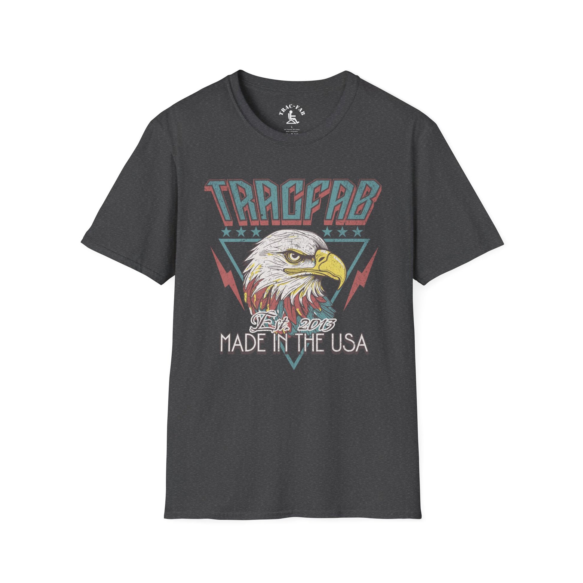This vintage-style TracFab tee features a fierce eagle design with “Made in the USA” pride. Est. 2013 and still going strong.Together, we’re breaking boundaries — one entry at a time.